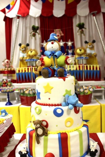 Depois do Convite a Decoração da festa é o mais importante, É possível pensar em uma decoração apenas colorida, como o ambiente do circo, ou explorar a riqueza dos personagens circenses e você pode contar com empresas especializadas no ramo para dar todo aquele toque especial a sua festa: